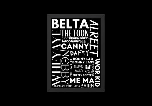 Belta Word Print // Geordie Words // Geordie Dialect // Geordie Slang // Newcastle Dialect // Belta Print // Belta Word